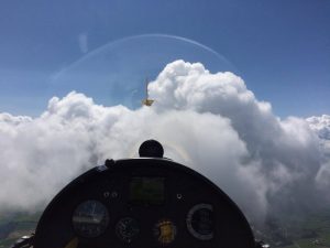 Barry Kerby and Keith Lorenz were the first privateers to launch contacting well organised wave almost immediately after release from aero-tow, and quickly out climbed Neil and Andy in the DG 500. They subsequently went for a 4:30 minute tour around the Yorkshire countryside in 666 reaching FL 125 with ease, only having to stop the ascent due to an active airway.